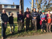 Nous sommes 11 à nous retrouver avec plaisir sur le parking de la mairie. Nous enfilons une petite rue, puis un chemin qui contourne une jolie mare, et prenons la route vers la campagne. Dans le rétro, ou plutôt en tournant la tête, nous jetons un regard à l’abbaye : les vieilles pierres se chauffent au soleil. Il en va de même pour nous, les vestes tombent, il fait bon marcher sous les rayons. Nous cheminons à travers champs, avant de longer un peu le bord de seine. Nous marchons maintenant entre vergers et marécages, croisant ici et là animaux de basse -cour, moutons, chevaux. Les chemins sont faciles, on quitte les champs pour les petits bois de bord de lac. Un étang de pêche, des aigrettes, canards et poules d’eau, puis c’est l’heure du gouter: beignets préparés avec gentillesse, gâteaux, biscuits, chocolats, café : on se régale! Retour entre chemins et routes pour regagner le village et rejoindre le parking. Nous avons fait provision de bonne humeur et de soleil, une fois de plus. A bientôt.
