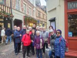 Sous un rayon de soleil rasant qui fait presque mal aux yeux, nous nous retrouvons devant le théâtre des arts. Ça discute déjà par petits groupes, heureux de se revoir, quand nous partons vers la rue d ‘Harcourt…. Puis nous enfilons la place du Vieux Marché, la rue des Bons Enfants, la rue Beauvoisine, avant d’aller jusqu’à la Croix de pierre, pour revenir par la rue Eau de Robec, le bas de la rue de la république…. Admirant au passage les colombages. Mais surtout à la recherche d’enseignes anciennes et de vieilles publicités peintes sur les murs de briques. Notre ville arbore un magnifique patrimoine et des richesses de détails variés que nous regardons à peine en traversant les quartiers habituellement. Notre promenade nous permit d’en saisir plus particulièrement quelques- uns avant le pot de fin d’année traditionnel pour notre groupe, place de la Cathédrale …. Pascale Marais